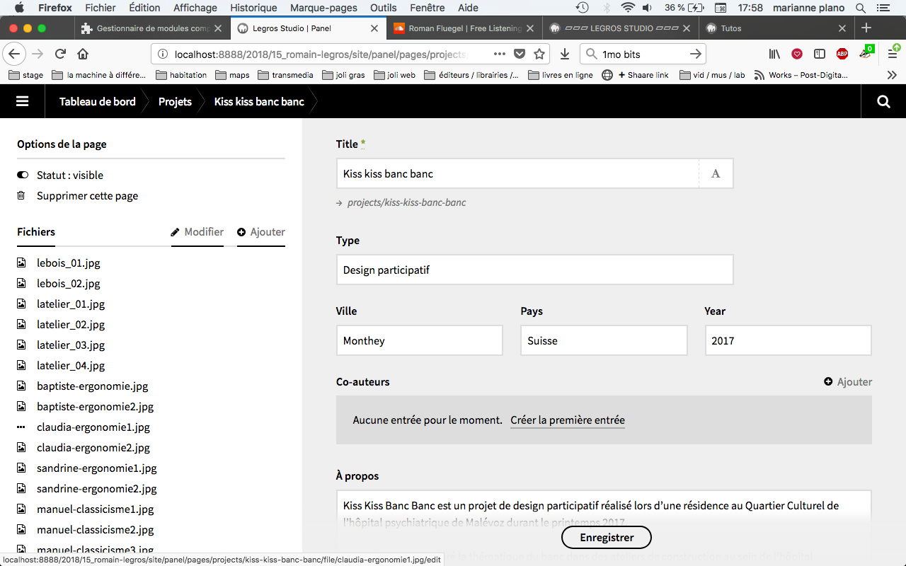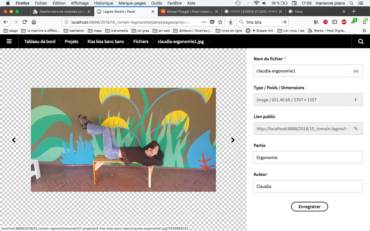 Tu as la possibilité de décrire les images, en spécifiant l'auteur de l'objet ou une partie. J'ai ajouté cette possibilité en regardant comment tu avais construit ton portfolio, mais rien de définitif :)