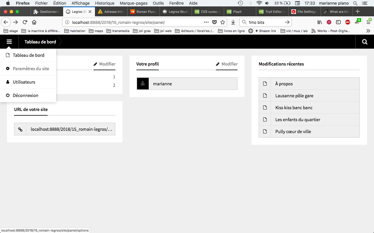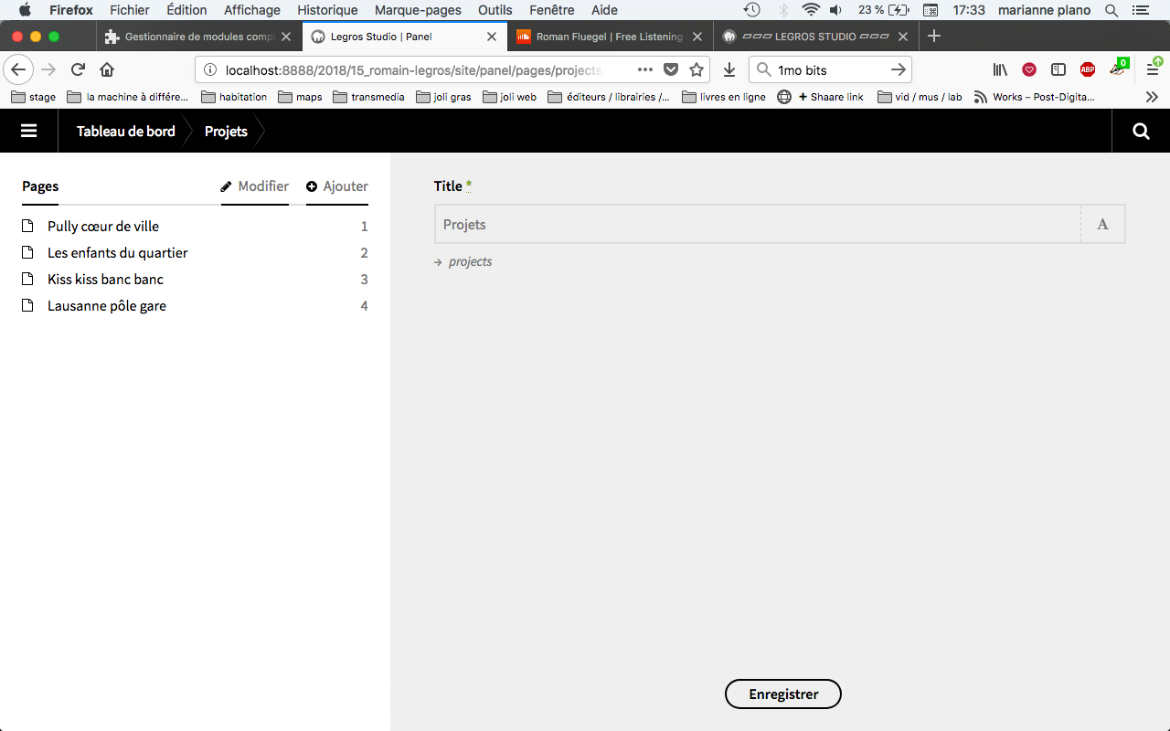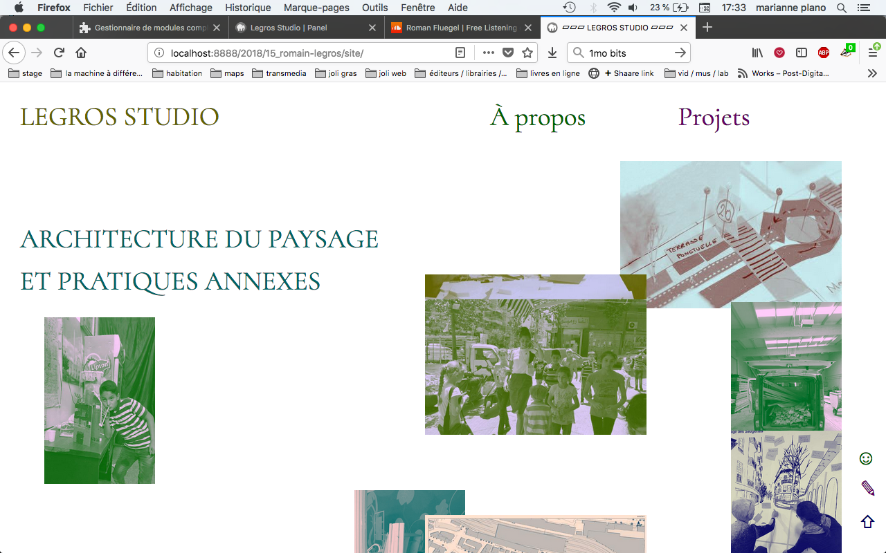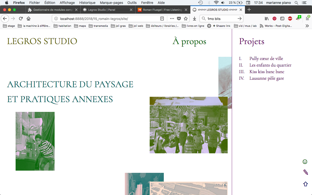 Dans cette section, tous tes projets, qui apparaissent dans l'ordre que tu choisis, à la fois dans le menu et dans le scroll.